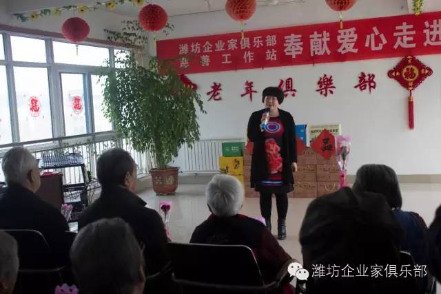 为了丰富老年人精神生活,潍坊东方企业家俱乐部还给老人们带去了精彩的节目表演和书法作品。潍坊东方企业家俱乐部副会长郝惠娟高歌一曲,潍坊东方企业家俱乐部副秘书长赵化民献上“寿”字,引来老人们阵阵掌声,让活动达到高潮!