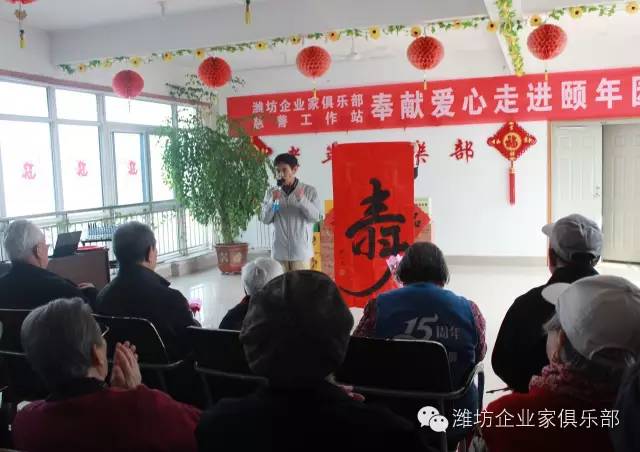 4月10日,潍坊东方企业家俱乐部慈善工作站奉献爱心走进华都颐年园为园内老人送爱心。