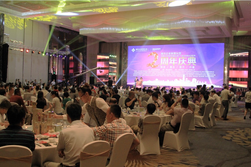 7月25日,潍坊东方企业家俱乐部以“转型·整合·提升·共赢”为主题的“潍坊总部基地杯”2周年庆典活动在万达铂尔曼隆重举行。潍坊市各界领导、兄弟商会、潍坊东方企业家俱乐部成员和来自各行各业的400多名嘉宾欢聚一堂,共同分享2周年的喜悦与精彩。