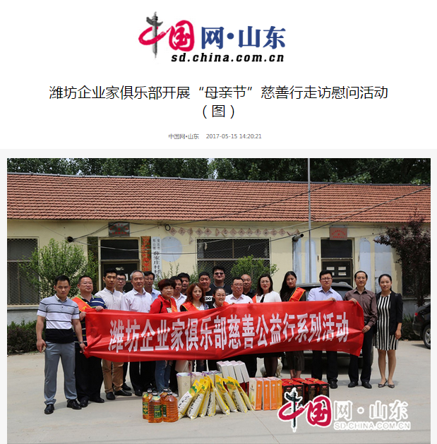 潍坊东方企业家俱乐部母亲节慈善行走访慰问活动受到社会各界的广泛关注,省、市级各大媒体相继对本次活动进行了报道。