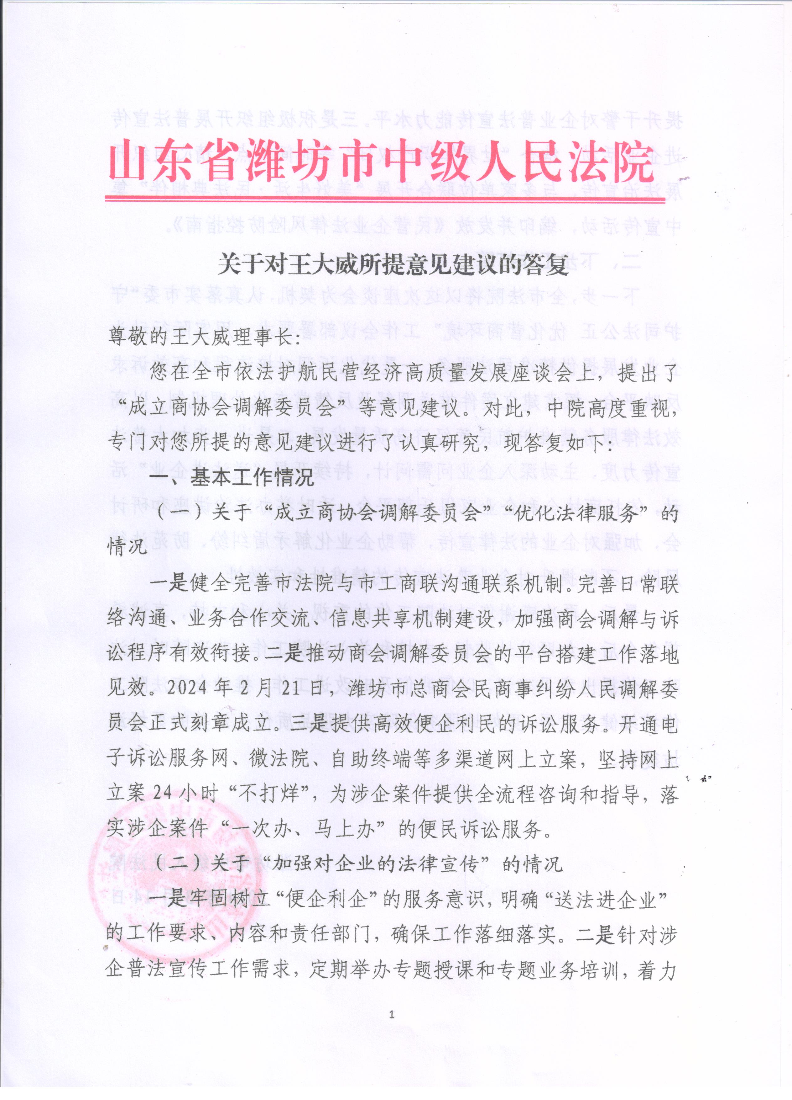 在答复中,市中级人民法院对各项意见建议进行了逐一回应,并详细介绍了法院在成立商协会调解委员会、优化法律服务、加强对企业的法律宣传等方面的工作进展和下一步工作打算。这些举措不仅有助于提升法院的司法服务水平,更为民营企业的发展提供了有力的法治保障。