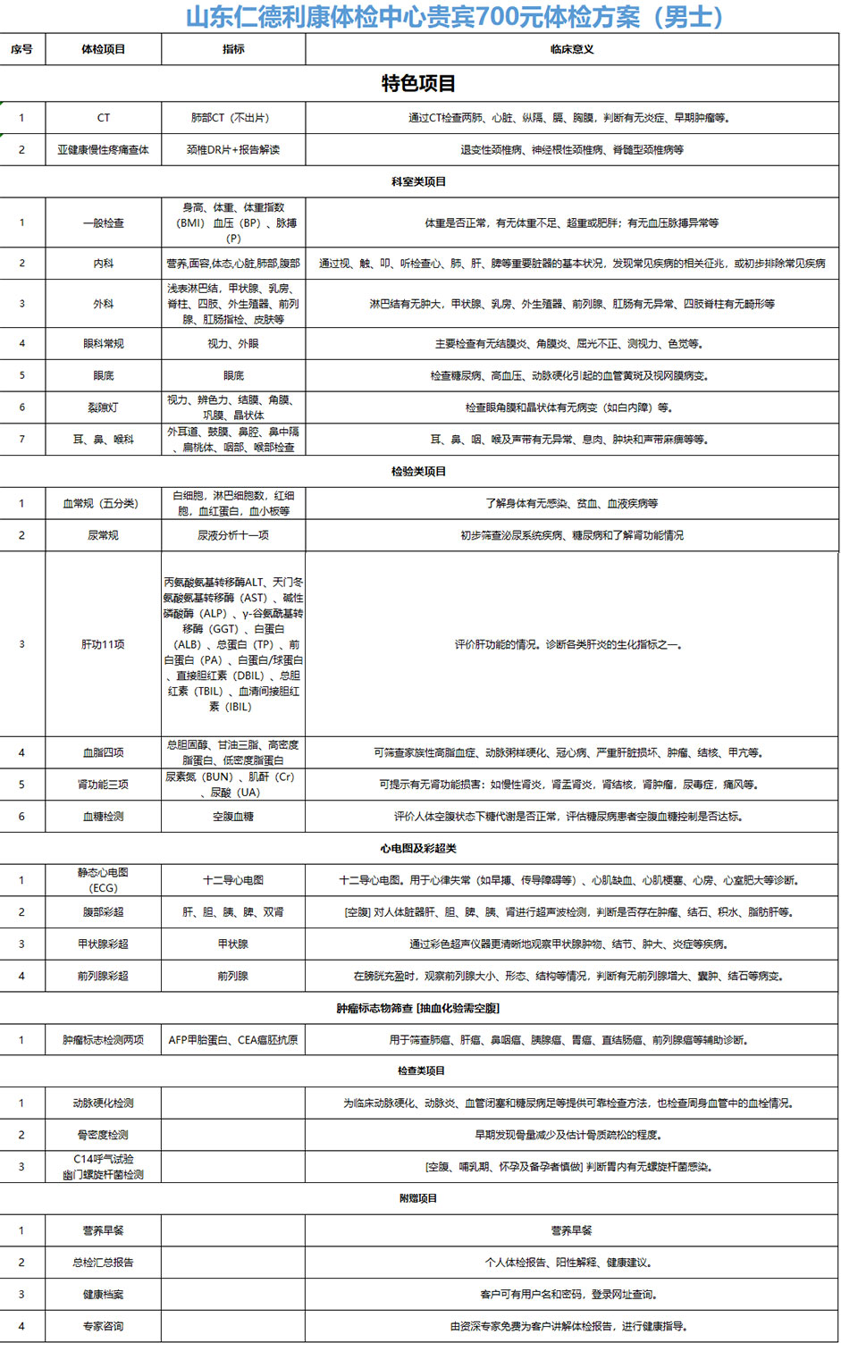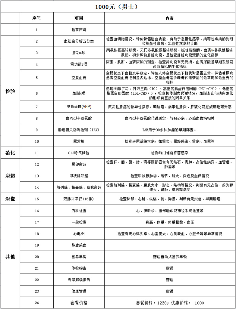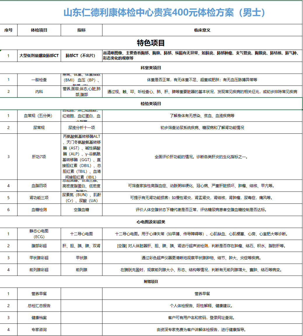 我们推荐的是潍坊东方企业家俱乐部的常务会长单位——阳光融和医院,以及VIP会员单位——仁德利康健康管理有限公司为大家精心准备的体检套餐,所有套餐价格都是潍坊东方企业家俱乐部专属优惠。您如果真心关爱您的家人或员工,那就一块来做一次全面的健康检查,享受我们高质量的VIP保健服务!